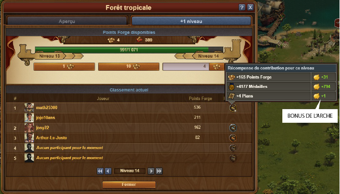 Sans l’Arche, vous auriez gagné 165 pf, 4177 médailles et 4 plans.