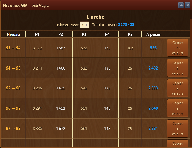 Pas besoin de faire des calculs, il existe un site qui fait tout à votre place : https://foe.tools/