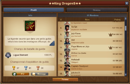 Astuce : donner des ressources à la guilde donne des points de classement.