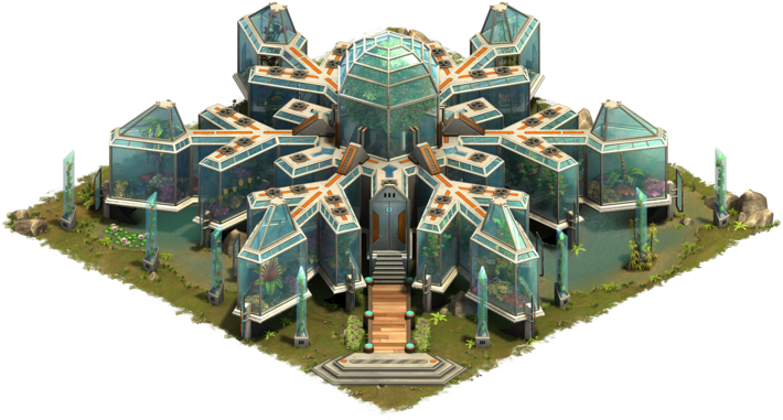 1bis - Hagia : Producteur de pf moindre, plus gros, mais moins cher à monter. Comme cap canaveral, c'est inutile de le poser si vous ne le montez pas très vite à 60. Certains considèrent que même à ce niveau, il ne vaut plus la peine en regard de sa très grande taille, et du fait que les bâtiments spéciaux qui sortent actuellement produisent de plus en plus de pf. .